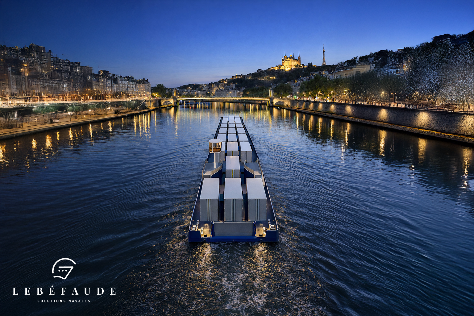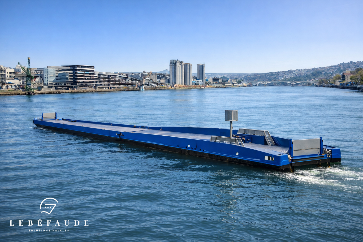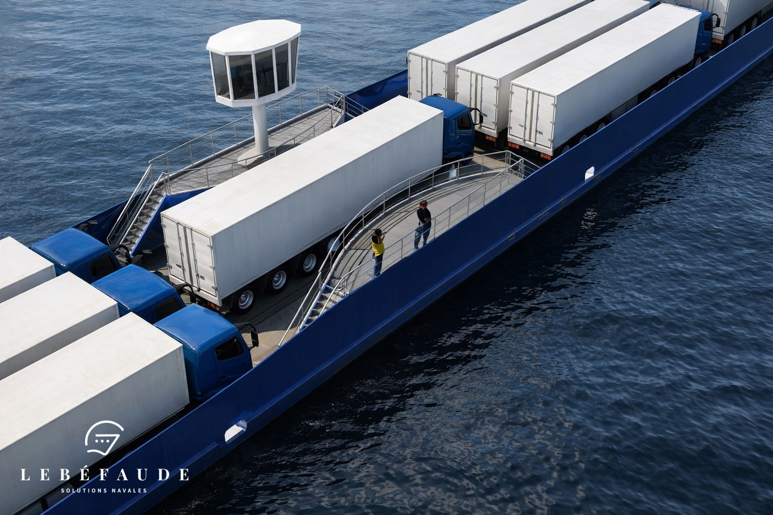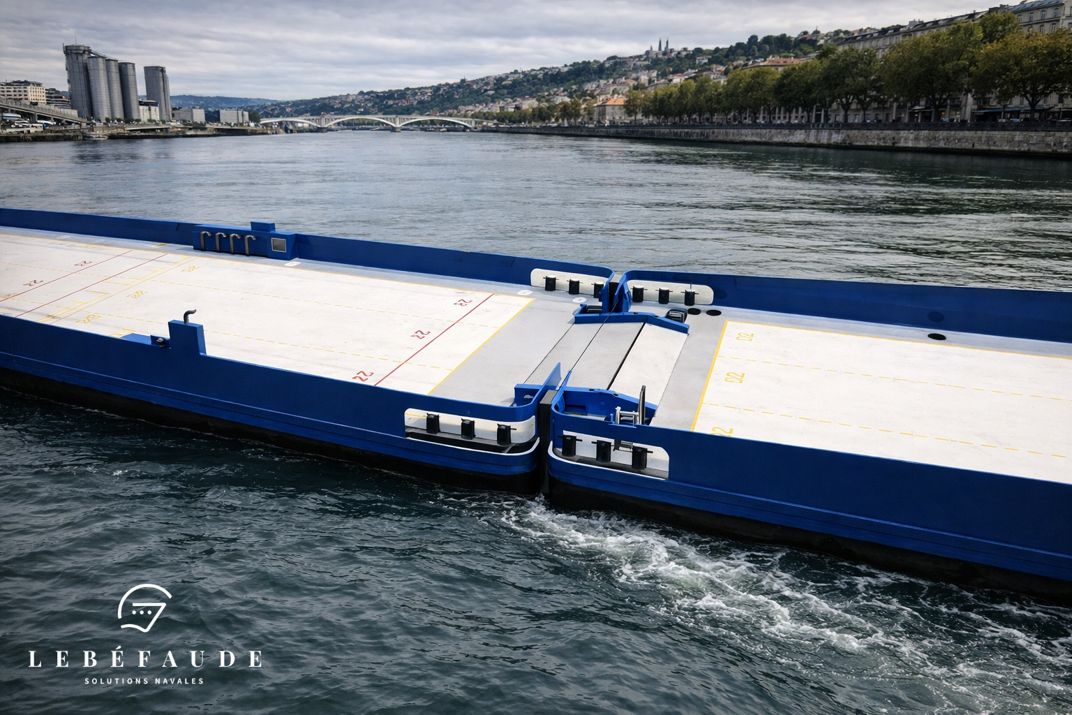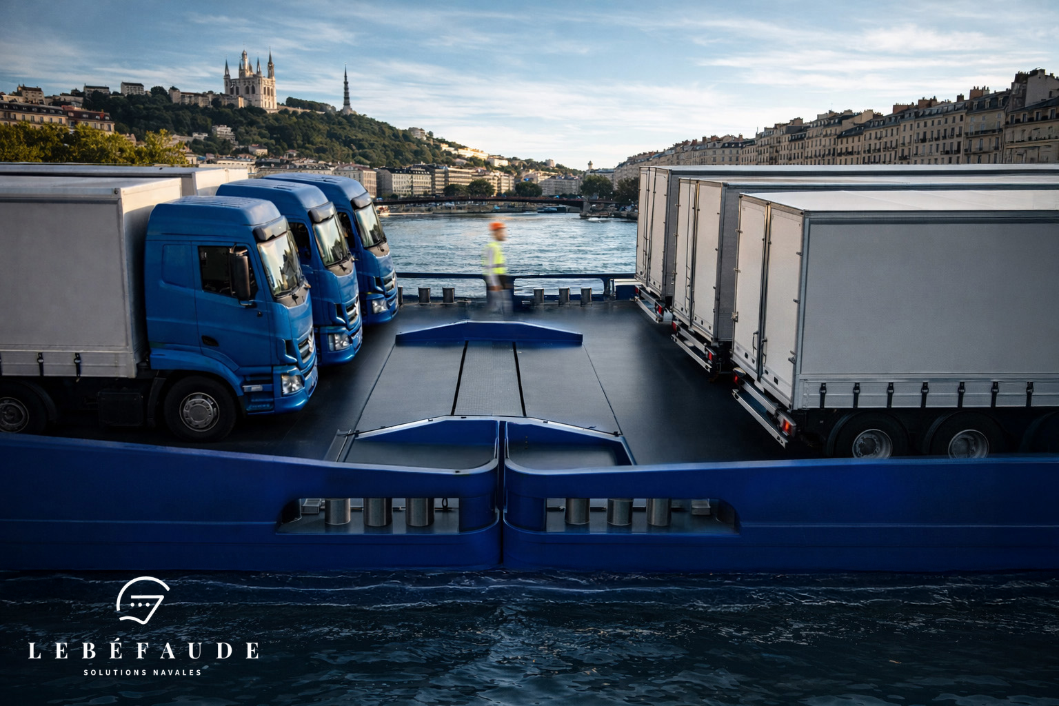 Dans un contexte de fortes contraintes propres au transport routier longue distance, notre Bureau d’études LEBÉFAUDE SOLUTIONS NAVALES est intervenu sur l’étude et la conception d’un projet fluvial innovant de type Ro-Pax (roll on – roll off – Passenger), intégrant le transport fluvial comme levier d’optimisation des flux de poids lourds.